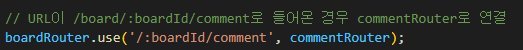 아래의 소스에서는 boardRouter로 들어간 요청이 다시 commentRouter로 들어갔을 때