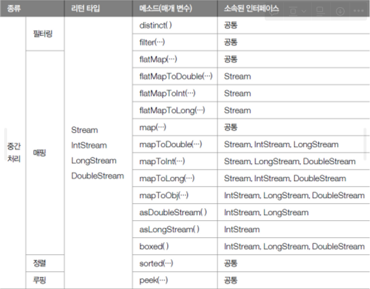 - 파이프라인에서 최종 최종 처리를 제외하고는 모두 중간 처리 스트림으로 본다.