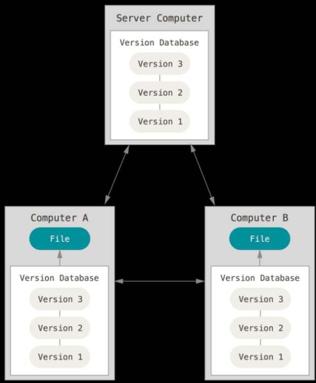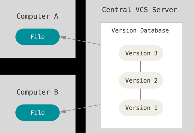 위의 그림처럼, 버전 관리를 중앙 서버에서만 한다.