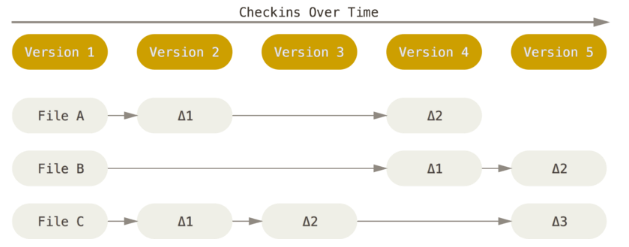 이렇게 되면 각 버전마다의 많은 용량을 차지할거라고 생각하지만, 효율적인 방식으로 저장한다고 한다.